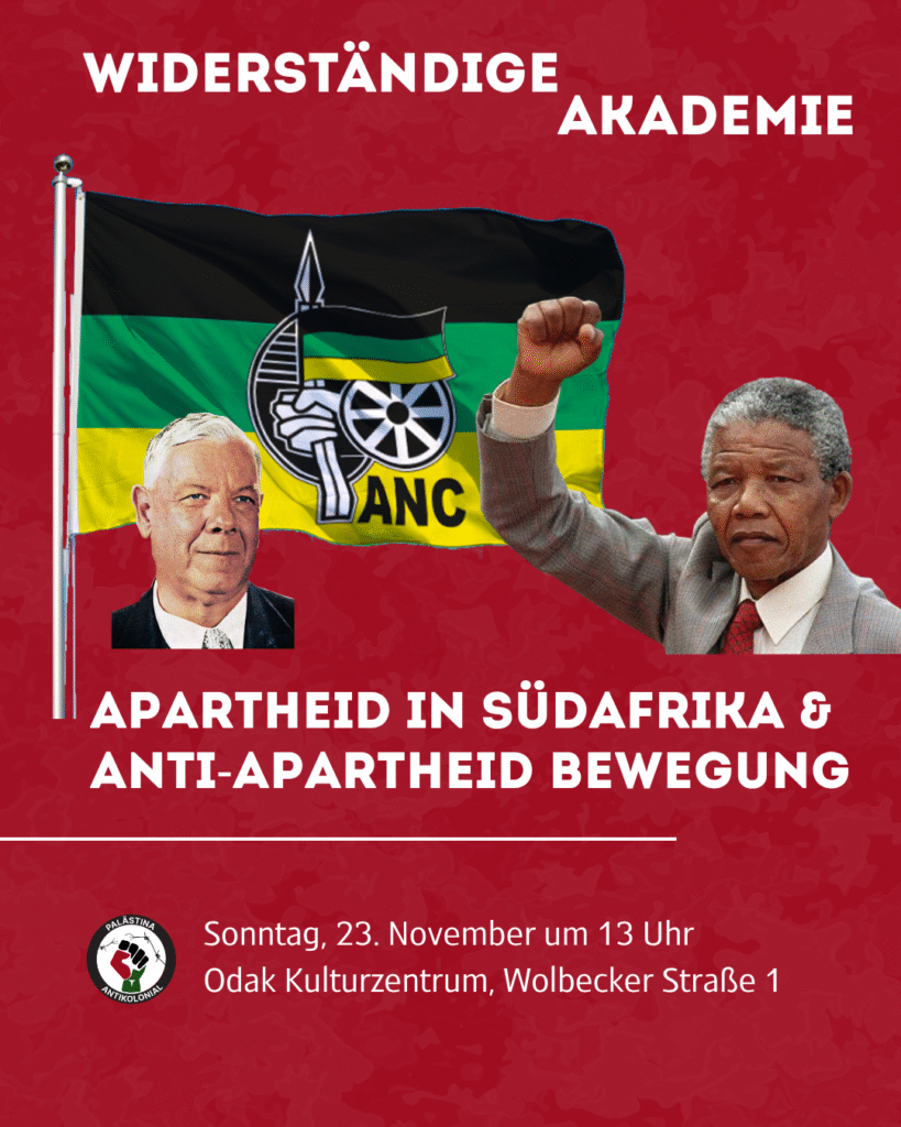 Die Apartheid-Regierung in Südafrika war rassistisch und unterdrückte die nicht-weiße, vor allem schwarze Bevölkerung des Landes. Diese Regierung wurde in den 1990er Jahren abgeschafft. Diese Geschichte ist allgemein bekannt, doch selten wird kritisch hinterfragt, wie genau dies geschah. Warum geschah dies ausgerechnet in den 1990er Jahren und nicht davor oder danach? Wer oder was hat die Regierung abgeschafft? Die Vereinten Nationen? Die USA? Deutschland? Oder war es der Widerstand der unterdrückten Bevölkerungen vor Ort oder eine Massenbewegung organisierter, solidarischer Menschen überall auf der Welt? „Boykott Apartheid“ – kennt jemand vielleicht diesen Slogan aus den 70er Jahren in der BRD?